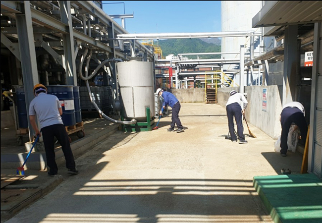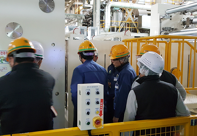 東レ尖端素材は経営トップから現場の従業員まで一人も外さず安全管理に参画しています。自分と同僚の安全のため、危険要素を見つけ出し改善し、安全な事業場づくりに向け努力しています。それに加え、共に働く全ての協力会社の安全レベルを高めるためにも積極的に支援しています。そして、多様な健康増進プログラムを運営し、全ての従業員の生活の質を向上させるため努力しています。