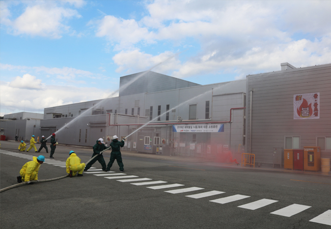 • 自社消防隊を組織し、火災発生の際に速やかな対応が できるように定期消防訓練を実施